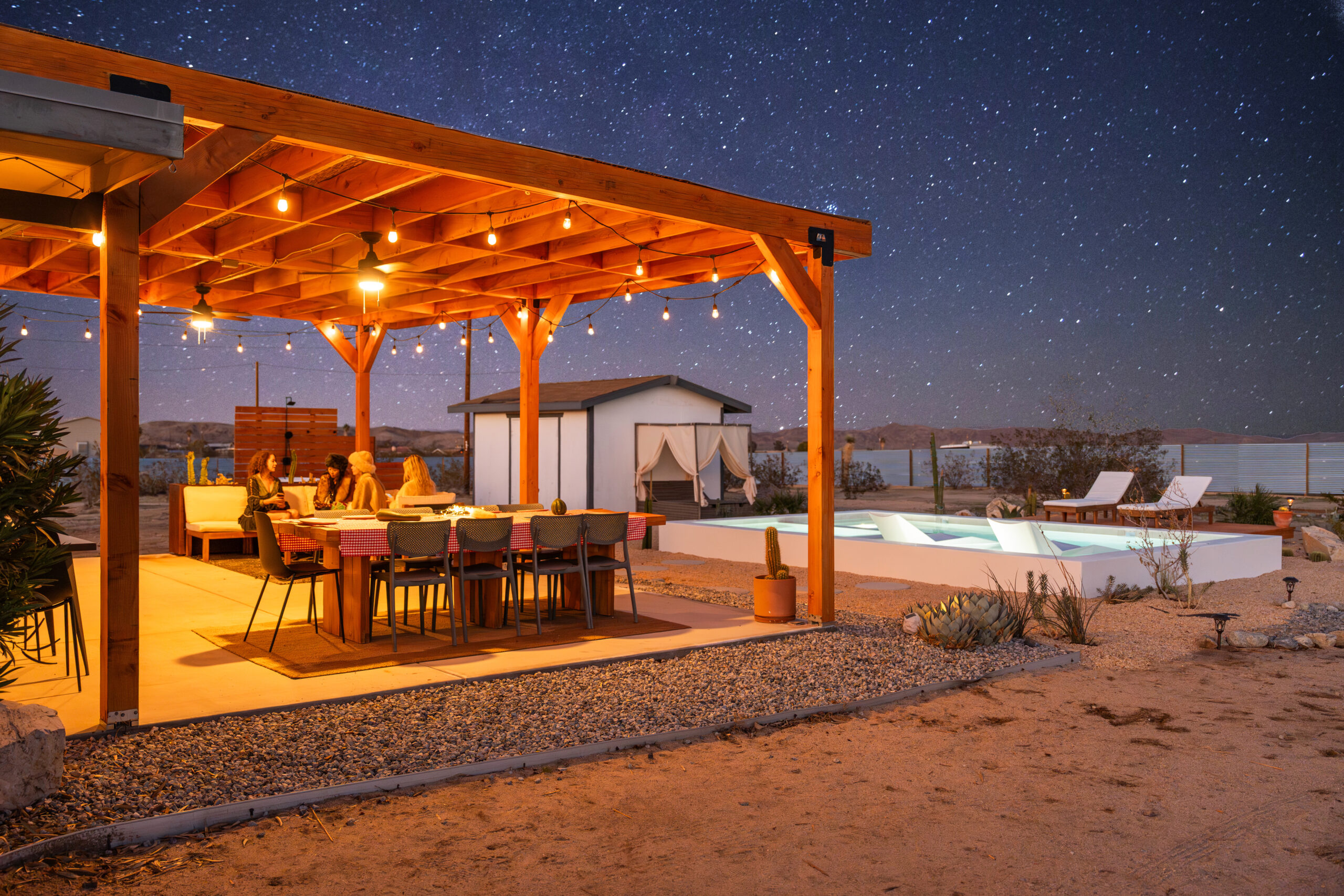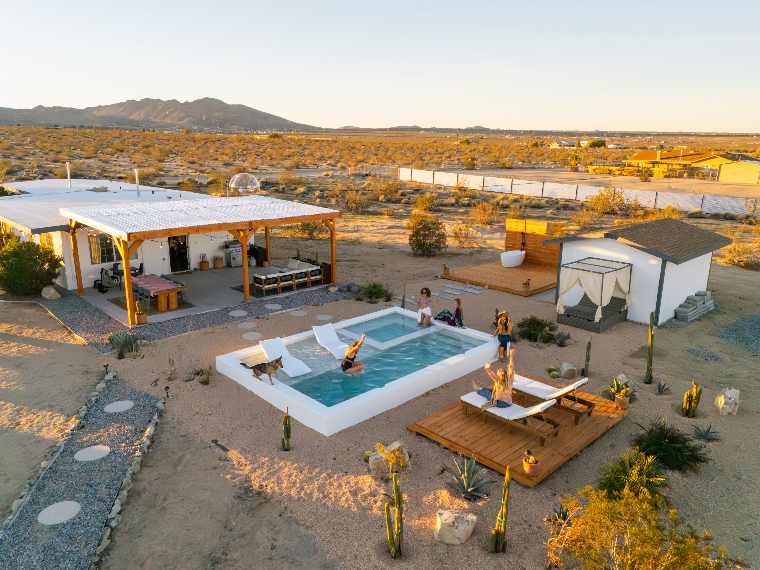 ✪ Welcome to Golden Nugget – a peaceful desert escape made for small groups or couples. Enjoy stunning views, star-filled skies, and relaxing soaks in the private hot tub. Gather around the fire pit, share meals under the open sky, and unwind in comfort. Just minutes from Joshua Tree National Park, this serene retreat offers the perfect mix of style, space, and quiet desert magic.