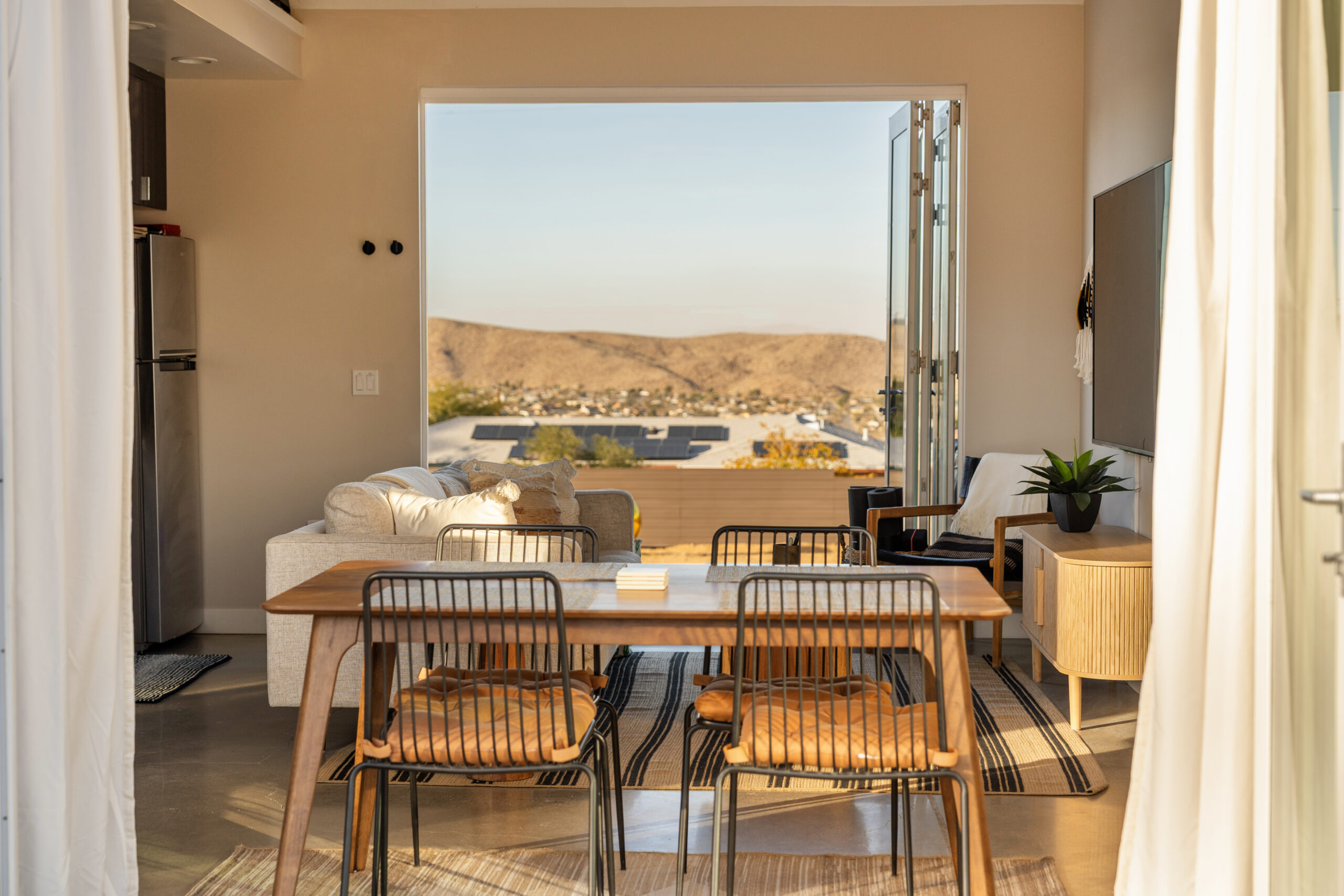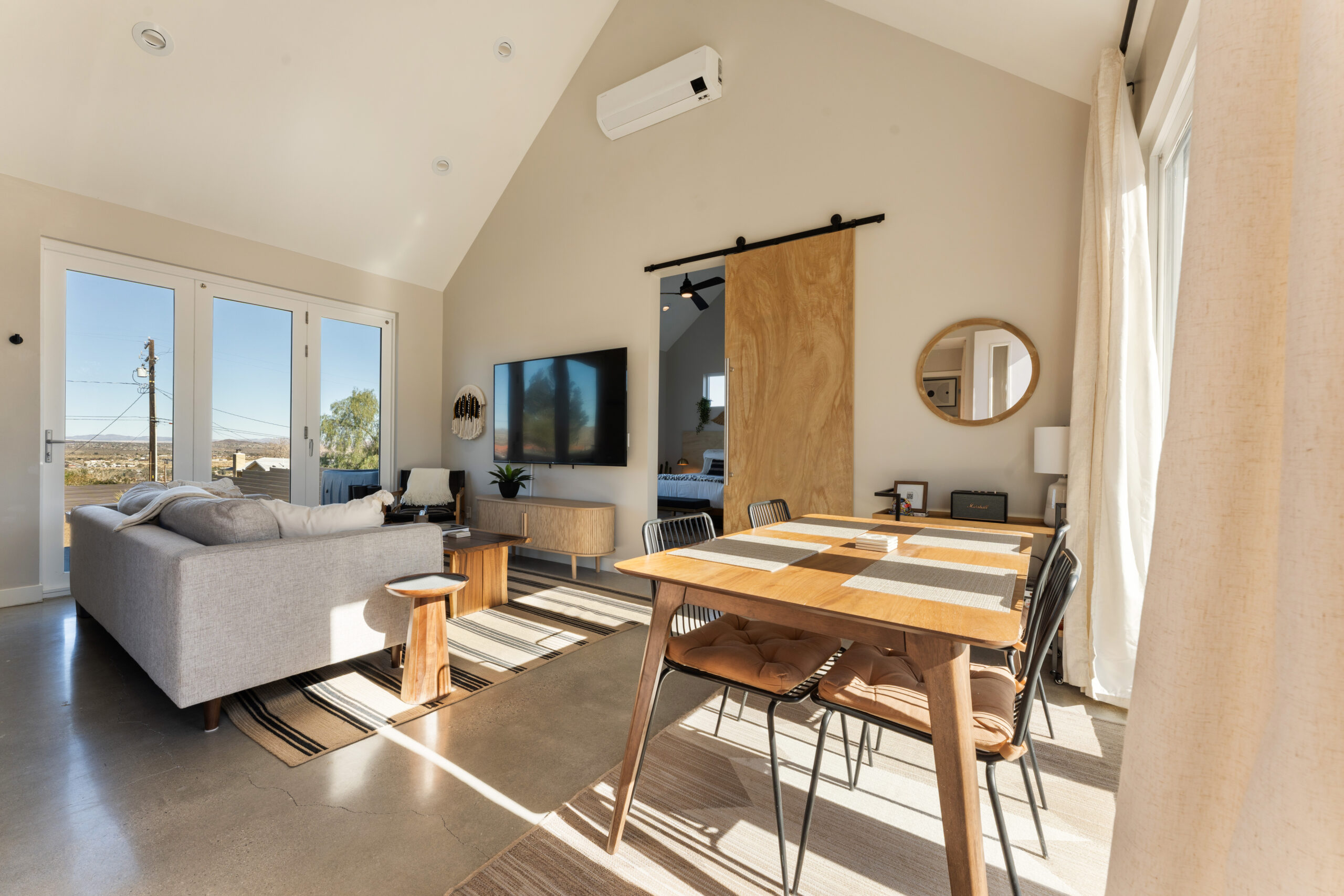 Welcome to Sol + Shadow, a newly built 2-bed, 2-bath desert retreat in the heart of Joshua Tree. Filled with natural light and thoughtful design, this modern escape is minutes to The Dez, Joshua Tree Coffee, and more, with the national park entrance minutes away. Perfect for couples, families, or friends looking to disconnect and reset, plus a Marshall Bluetooth speaker to set the vibe.