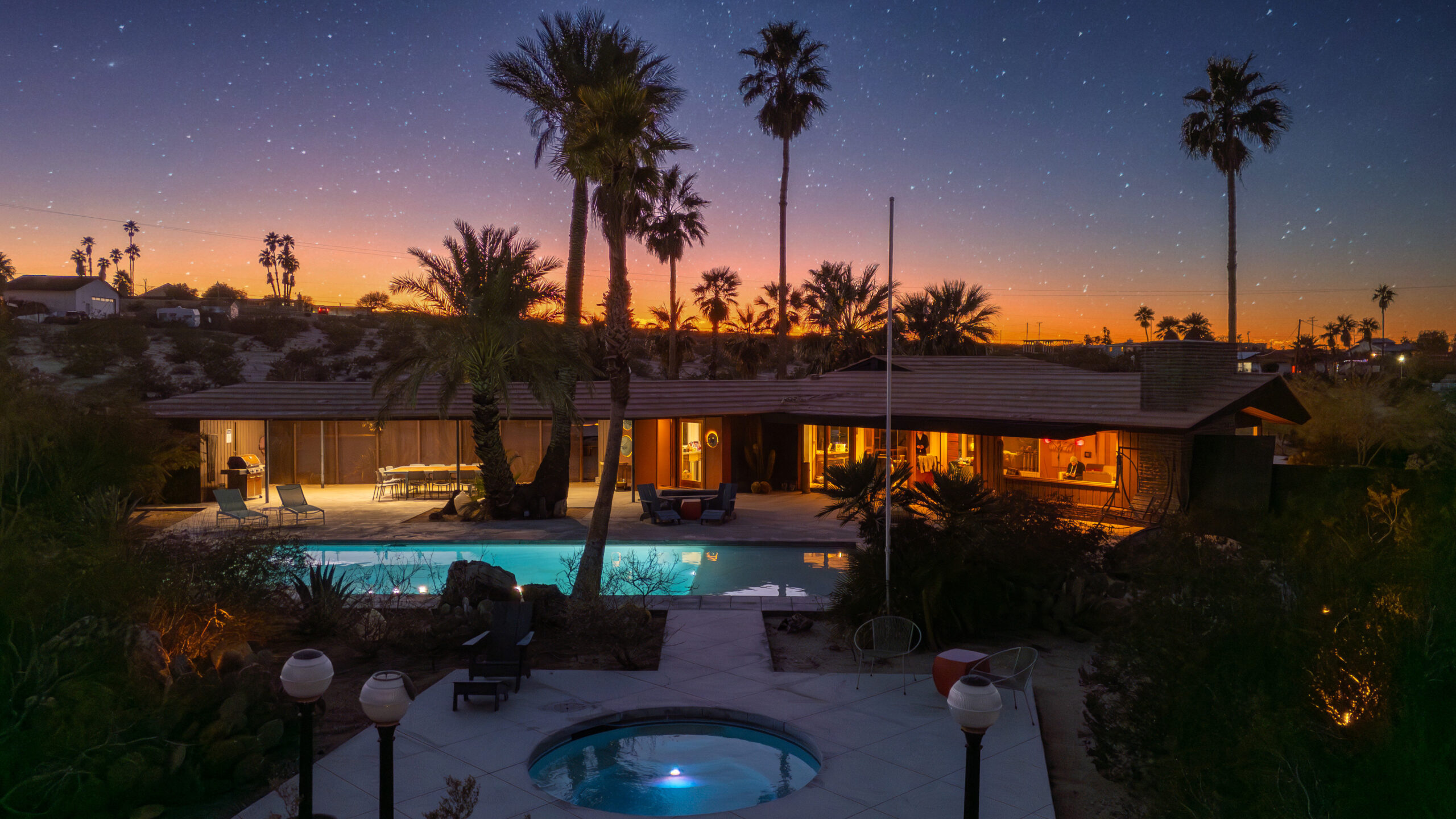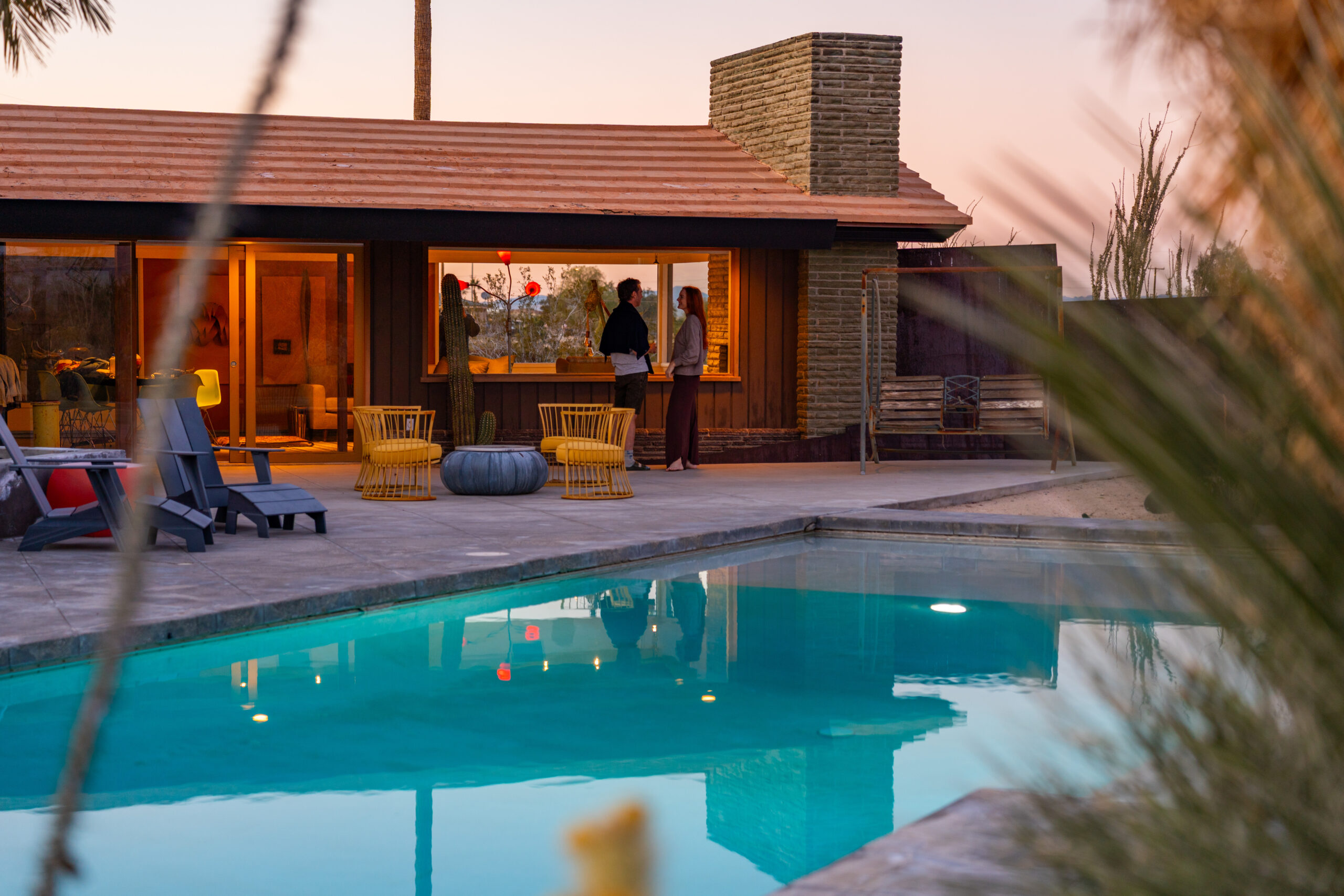 The Wheelhouse is a rare mid-century-meets-funky high-desert retreat in trending Twentynine Palms. Set on 12 private acres just minutes from the Joshua Tree National Park 29 Palms entrance, this architectural ranch blends rustic luxury with iconic indoor-outdoor living, where every corner invites discovery. Enjoy open desert views, a pool and spa, fire pit, and expansive patios perfect for creative retreats, intimate weddings, or quiet restoration with family and friends.